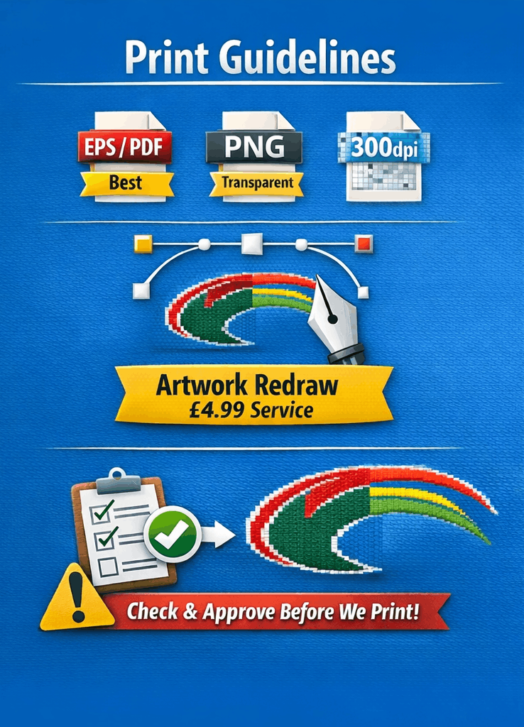 - Use our Artwork Redraw Service (£4.99 one-off)